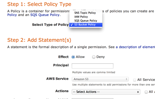 To do this, visit http://awspolicygen.s3.amazonaws.com/policygen.html.Step 11: Inside of the Policy Generator, select “S3 Bucket Policy” as the policy type.